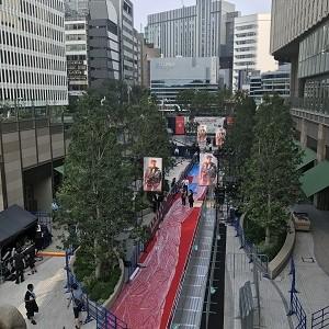ミーティング後、オフィスの下に何やらレッドカーペットを発見しました!