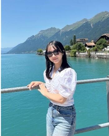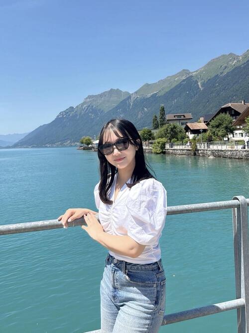 ヨーロッパ旅行をしました!スイスのブリツエンツ湖での写真です😊