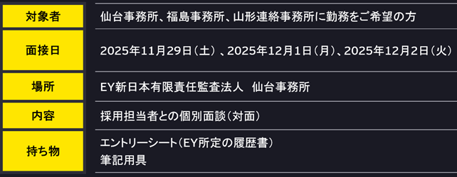 本日はEY新日本東北ユニットでの採用面接のご案内をいたします!